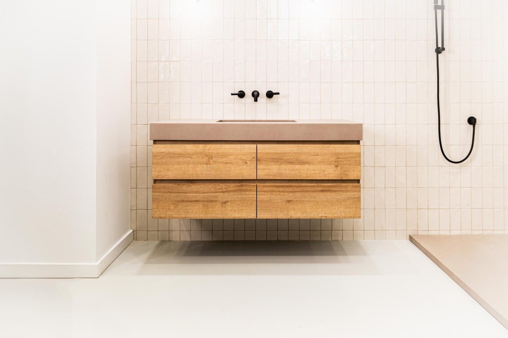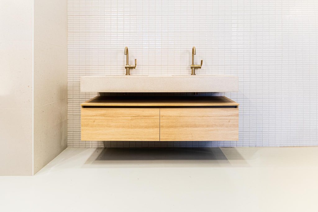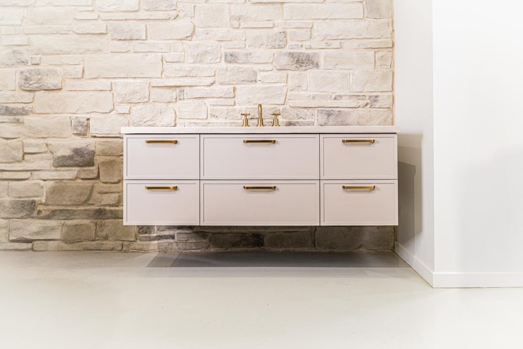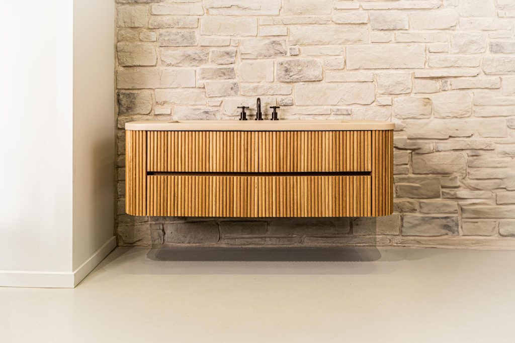 Romy séduit par ses lignes nettes et sa forme suspendue qui allège l’espace. Sa conception sans poignées lui confère un style sobre, parfaitement adapté aux matériaux naturels tels que le béton ou la pierre. Création et fabrication québécoise. Plan lavabo vendu séparément.